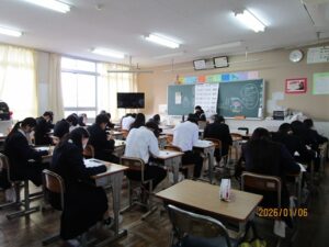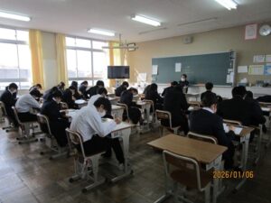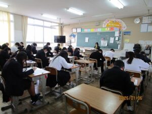朝の教室には、普段の笑顔に代わり真剣な表情が並んでいました。試験開始の合図とともに、教室は静寂に包まれ、問題用紙に向かう視線からは「力を出し切りたい」という思いが伝わります。これまでの努力を、この瞬間に発揮できるよう、集中して取り組んでいました。