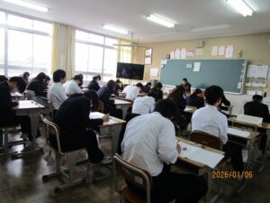 今日は始業式より一日早く、3年生が実力テストに挑みました。