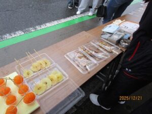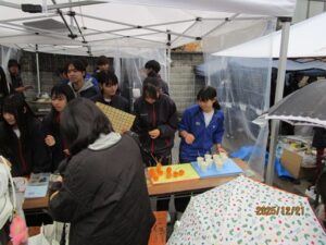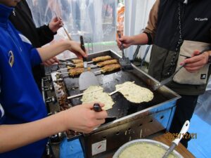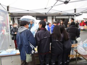 生徒会が中心となって企画・運営した「はしまき」や「フルーツ飴」は、開始から早い時間に完売するほどの人気でした。特に守山の名産《ホタルネギ》を使用した「はしまき」は絶品で、「給食のメニューに入れてほしい。」という声も聞こえるほどでした。みんなで力を合わせ、団結して取り組んだ姿は本当に素晴らしかったです。