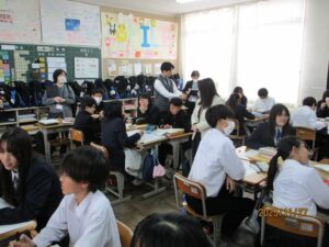 生徒たちは、資料を通して「自分たちならどうするか」を考え、グループで意見を交換しました。