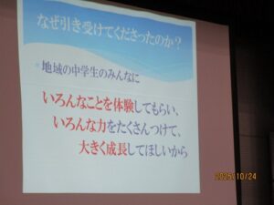 初日は緊張した面持ちの人が多くみられましたが、学校ではできない学びのために「自分とつながる」、「人とつながる」、「社会とつながる」ことを意識して、頑張ってください。
