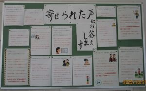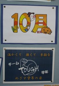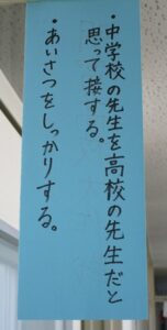 「不安なのは自分だけでない」、「周りの友達が頑張るから自分も頑張れる」、そんな声を多くの卒業生から聞いています。明富中学校の3年生が歩く廊下には様々な掲示物がみんなを応援しています。