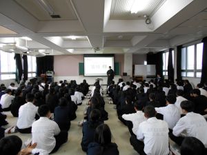 下の写真(左から1年生、2年生、3年生)は、各学年の学年集会の様子です。学年担当の先生の個性豊かな自己紹介や学年での約束事を確認しながら、これから始まる一年への期待をふくらませる時間となりました。