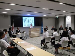 今日は、守山市中学生海外派遣団の壮行会が、守山市役所で行われました。