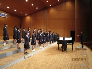 緊張した面持ちでしたが、心をひっつにして、合唱コンクールで発表した「地球星歌」と平和を歌った「空は今」の2曲を歌いました。講師の先生からは表情よく、美しい声が響いていたことやハーモニーの美しさを褒めていただきました。