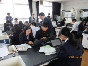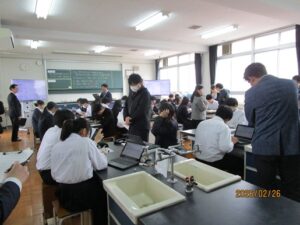2年生の理科の授業です。課題の説明のあと、データを入力したり、分析を行いました。