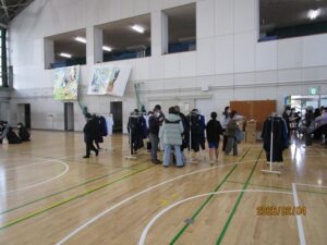 そして、今日は物品販売がありました。制服や体操服のサイズを合わせながら、