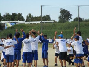 1・2年生とともに練習を始める10月になると学級がまとまってきた様子が見られます。