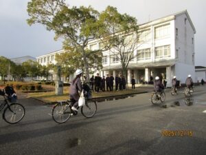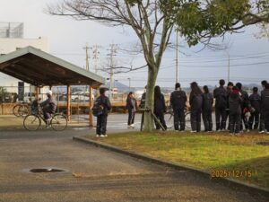 「あいさつを返してもらえるように」と、寒いなかでも、生徒たちは元気な声と笑顔で「おはようございます!」と呼びかけています。最近では参加する生徒も増え、校門前はとても明るい雰囲気になっています。