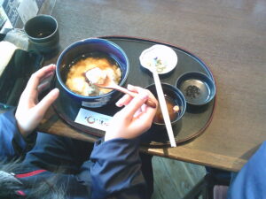 昼食ではパンケーキやそばなど、思い思いのメニューを楽しみました。特に「いろいろなものを食べられたこと」が生徒たちの大きな思い出になったようです。